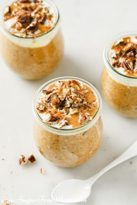 These pumpkin pie oats can be made as a quick soak cold version, prepped the night before for overnight keto oats, or warmed in a pan for a comforting pumpkin porridge style.