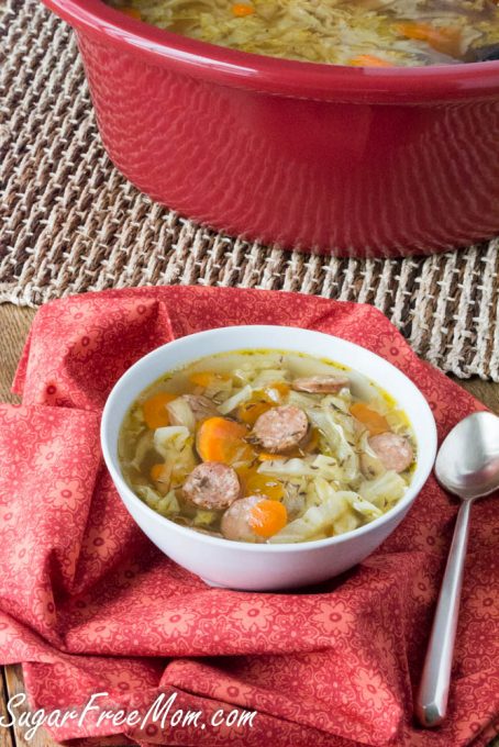 Slow Cooker Cabbage Soup with Sausage is a keto, low carb, gluten free, scrumptious easy, hearty soup any day of the week! Slow cooker or Dutch oven cooking options! Just 3 net carbs per serving!