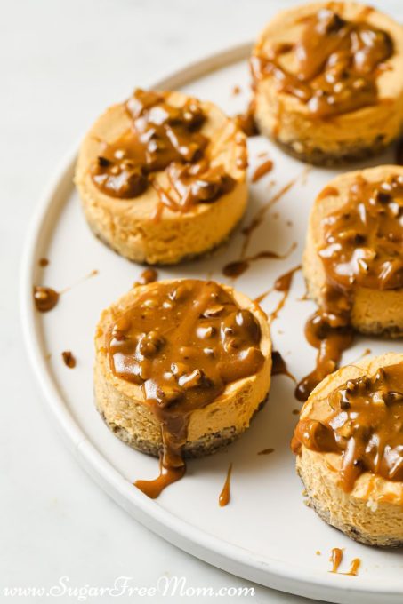Sugar Free Keto Pumpkin Pecan Caramel Mini Cheesecakes
