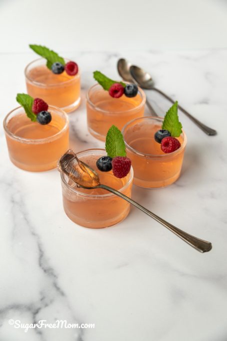 Though it has fewer calories, if you're following a clean keto diet, you will want to steer away from store bought sugar free jello because it contains artificial sweeteners which often spikes blood sugar levels.