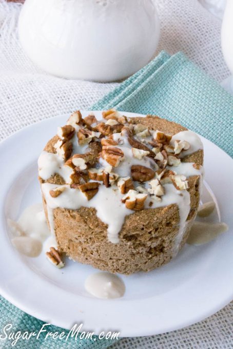 This Coffee Toffee Pecan Mug Muffin is made in a minute! It's made without sugar, low carb, grain free, almond flour free and gluten free! Just 1 gram net carb!